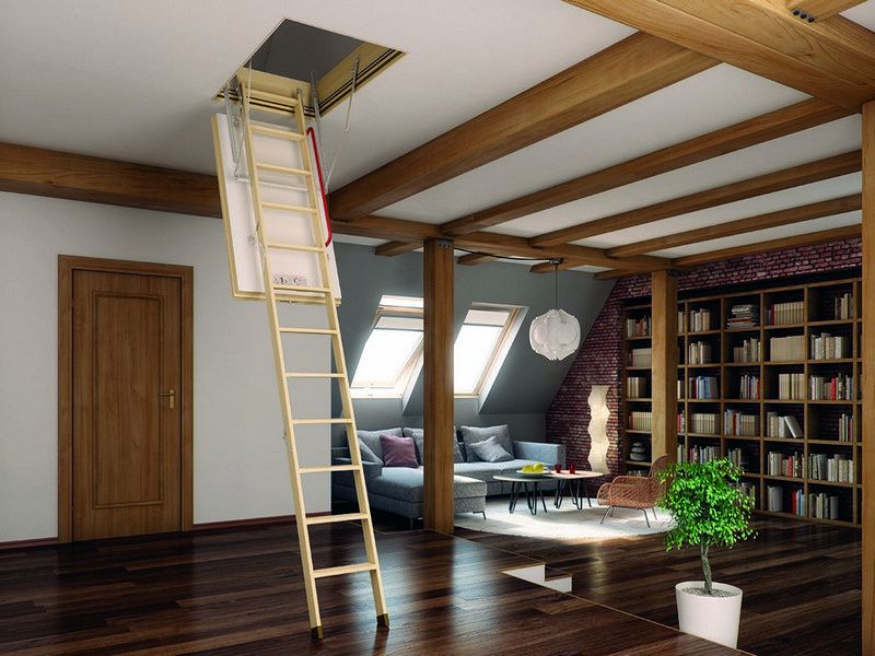 Чердачные лестницы фирмы FAKRO представлены в продаже по доступной стоимости. Такие изделия могут иметь в составе три или четыре секции, а сами изделия изготавливаются из сосны. С помощью конструкции можно безопасно и быстро подняться на чердак или в комнату мансарды. После завершения сборки лестница хранится в потолочном пространстве, а вписать ее можно в любой интерьер.
